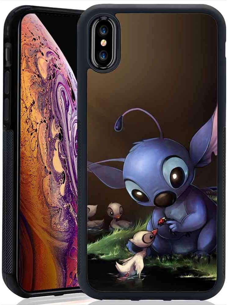 Amazon Com Disney Collection Style Stitch Wallpapers Phone Cover For Iphone Xs Max Black Shockproof Tpu And Hard Pc Back Design