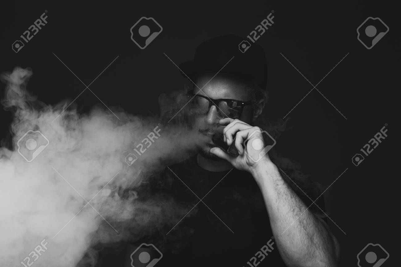 Vaping Mann Eine Rauchwolke Dunkler Hintergrund Schwarz Weiss Fotografie Lizenzfreie Fotos Bilder Und Stock Fotografie Image 93141875